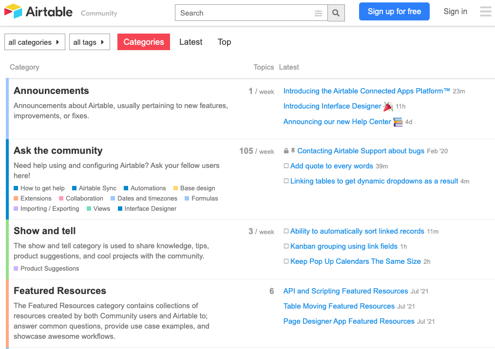 Take a look at Airtable*, AWS Honeycode, MongoDB, Sonar, and probably most of your favorite tech tools- they all use Discourse for their online communities. There's a reason that Discourse is most commonly the platform of choice for technical support and developer communities.