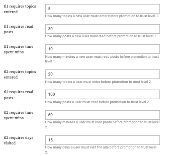 One of the most well-thought-out systems in all of Discourse is how they handle moderation and spam control. Discourse does this primarily through a system that they call Trust Levels. The short of it is that trust levels dictate the actions that any given member can take in your community. Actions like posting a reply, flagging a message as inappropriate, getting access to special categories, and even including more than 2 links in a post, are all controlled by trust level. Community members advance through the trust levels based on the number of posts they read, the number of new topics that they enter, the number of minutes spent reading, the number of responses added, etc. And as you may have guessed, each of these values is configurable for your community. For a more in-depth philosophy and write-up on the trust level system, check out the Discourse CEO's blog post here. The trust system is one of the more impressive feature systems that I've seen across community platforms anywhere, so putting this one is a big plus in the argument for using Discourse as a community platform.